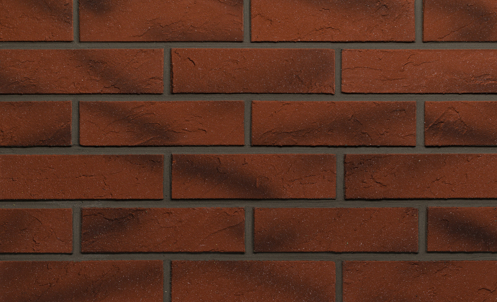 De rode steenstrips zijn licht geglazuurd met een zwarte kleur waardoor de steenstrip het effect van gebrandende stenen heeft. Deze smaakvolle tint geeft een heel natuurlijke uitstraling.