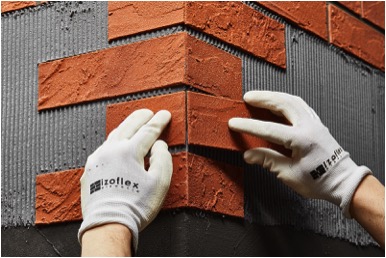 - Izoflex steenstrips worden met speciaal bijgeleverde lijm geplakt, bij voorkeur bij + 5° tot + 25 ° C.