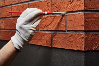 Stap 5: Het voegen van de steenstrips is niet noodzakelijk. Strijk de lijm in de voegen glad met een kwastje (10 mm). Zorg ervoor dat de gladgestreken lijm de randen van de steenstrips goed afdekt, zodat er geen water achter de steenstrips kan komen. |